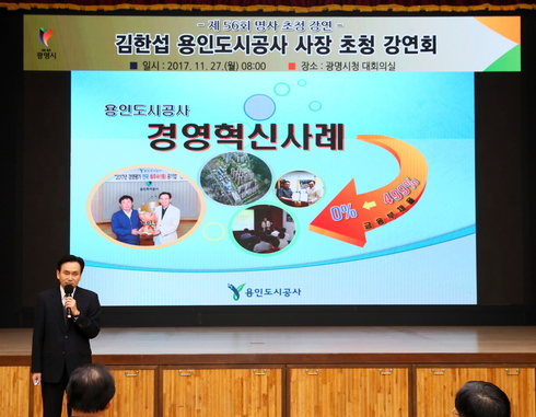[시사인경제] 광명시는 27일 시청 대회의실에서 용인도시공사 김한섭 사장을 강사로 초청해 공무원 및 광명도시공사 직원을 대상으로 “경영혁신 사례”라는 주제로 강연회를 개최했다.
