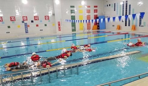 이번 안전체험교육은 우리 가족 및 주변에 응급환자 발생할 경우 꼭 알아두어야 할 심폐소생술(CPR) 및 자동심장충격기(AED) 사용요령 등과 현재 초등학교 학생을 대상으로 교육하고 있는 생존수영법 등을 실습 중심으로 실시했다.