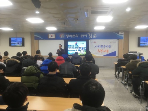 [시사인경제] 김포시는 사회복무요원 250여 명을 대상으로 지진발생에 따른 위기상황 대체방안에 대한 교육을 5일 민방위 재난실전훈련센터에서 실시했다.