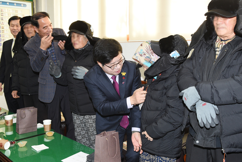 염태영 수원시장은 전달식에서 어르신들에게 직접 방한복을 입혀주며 “어르신들이 따뜻하고 안전한 겨울을 보내시는 데 작으나마 도움이 되길 바란다”며 “어르신들이 추운 겨울에 폐지를 주울 필요가 없는 환경을 만들기 위해 노력하겠다”고 말했다.