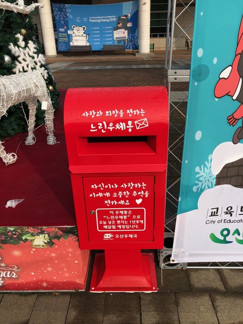 [시사인경제] 오산시는 지난 4일 가족간, 친구간, 연인간 전하지 못한 마음을 미래의 나에게 손편지를 보낼 수 있도록 느린우체통을 설치했다고 밝혔다.