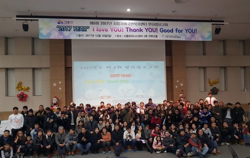 [시사인경제] 시흥시외국인복지센터는 지난 10일 시흥비즈니스센터 컨벤션홀에서 국가별 공동체 회원 및 센터이용자 등 300여 명이 참여한 가운데 ‘I love you, Thank you, Good for you'라는 슬로건으로 2017년 시흥시외국인복지센터 연사업보고회를 개최했다.