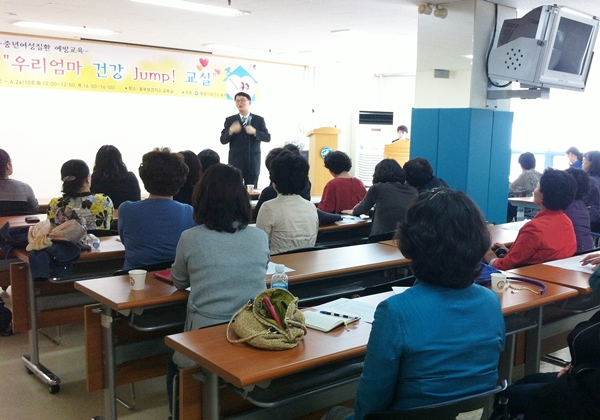 지난 22일 아주대학교 가정의학과 김범택 교수님의 ‘중년여성질환 바로알기’를 주제한 특강과 골밀도 측정검사로 문을 연 ‘우리엄마 건강Jump교실’은 10주 동안 매주 화·목 주2회(총 18회) 운영해 중년 여성들의 건강생활 실천 길라잡이가 될 것이다.