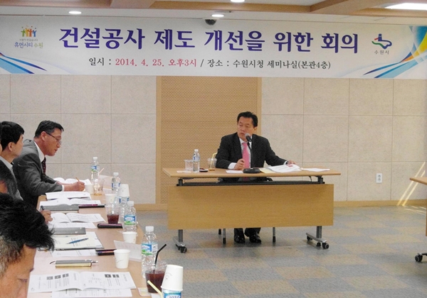 【경기인뉴스】수원시(시장 염태영)가 지난 25일 건설공사 제도 개선을 위한 회의를 개최했다.
