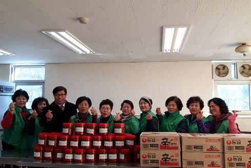 [시사인경제]강천면 부녀회에서 강천면 21개 마을 어려운 이웃들에게 사랑이 듬뿍 담긴 고추장과 라면을 전달했다.