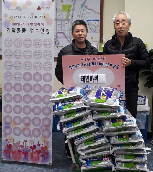 100일간 사랑릴레이 배턴 잇기 운동은 내년 2월 14일까지 추진예정으로, 지난 19일 녹양어린이집 원아들의 저금통 기탁과 이번 태연바퀴의 쌀 기탁으로 사랑릴레이가 이어져 가고 있으며 지금까지 1천100만원을 모금한 것으로 알려졌다.