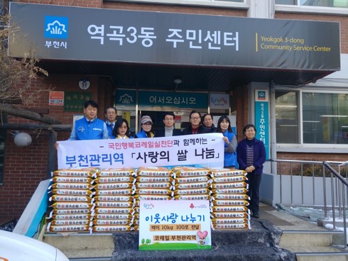 주영선 부천관리역 역장은 “추운 겨울을 맞아 어려운 이웃들에게 따뜻함을 전해드리고 싶은 마음으로 마련했다”며“앞으로도 지속적으로 이웃을 돕는 활동을 통해 지역주민과 함께 따스한 정을 나누는 일에 적극 참여하고 싶다”고 말했다.