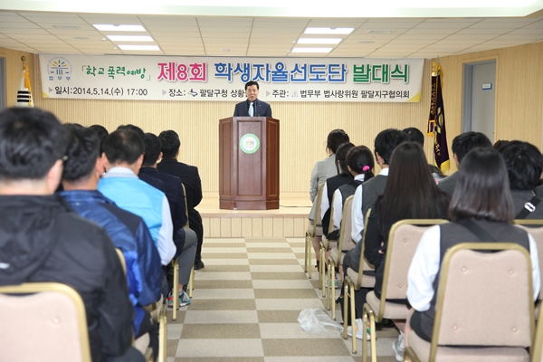 【경기인뉴스】법무부 법사랑위원 팔달지구협의회(회장 이석하)는 지난 14일 팔달구청 대회의실에서 김국일 수원지검 형사제2부부장검사, 김찬영 팔달구청장, 양창수 수원지역연합회 회장, 학생자율선도단원, 법사랑위원 등 120여명이 참석한 가운데 “제8회 학생자율선도단” 발대식을 개최했다.
