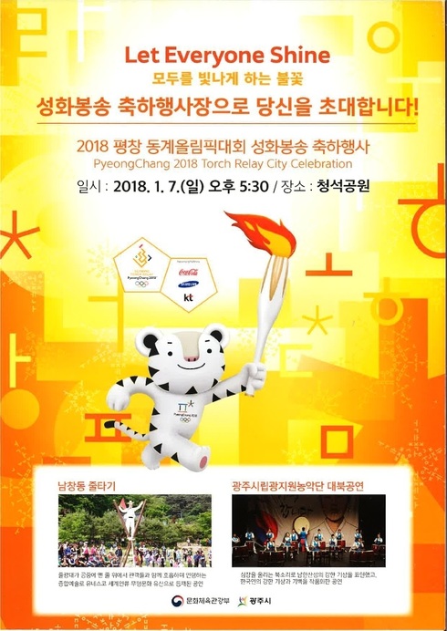 시 관계자는 “광주시민의 응원과 성원을 담아 세계인의 겨울 스포츠 축제인 평창 동계올림픽이 성공적으로 개최되길 희망한다”고 말했다.