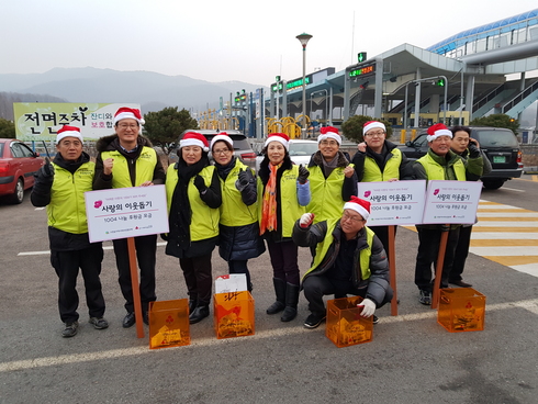 이번 행사는 연말연시를 맞아 어려운 이웃에 대한 자발적인 관심과 사랑으로 지역사회의 희망온도를 높이자는 취지로 마련됐으며, 이틀간 고천동 지역사회보장협의체 위원과 자원봉사자, 공무원 등 22명이 참여해 의왕톨게이트를 통과하는 차량을 대상으로 통행료를 정산하고 남은 동전을 모금해 총 1,008천원의 1004나눔 후원금을 모았다.