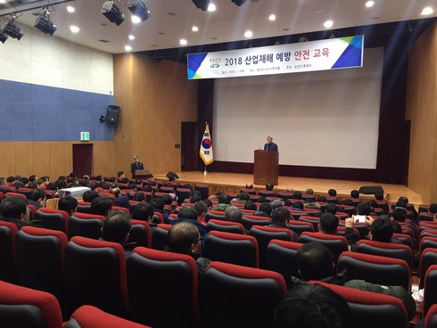 [시사인경제]오산시는 지난 4일 오산시 중앙도서관 다목적홀에서 오산시 소속 환경미화원, 운전원, 생활폐기물 수집·운반 대행업체(이하 3사) 수거원 및 운전원등 약 130명을 대상으로 “2018 산업재해 예방 안전교육”을 실시했다고 밝혔다.