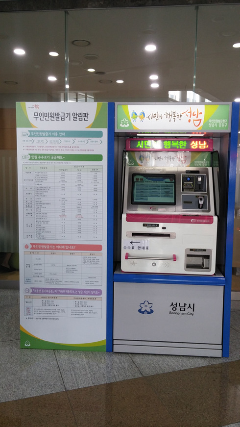 | 성남시청 1층 종합민원실 앞에 있는 무인민원발급기 |