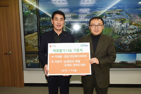 [시사인경제]하남시는 지난 8일 유한회사 제철이 지역사회의 소외된 이웃을 위해 사용해 달라며 성금 3천만 원을 하남시에 기탁했다고 밝혔다.