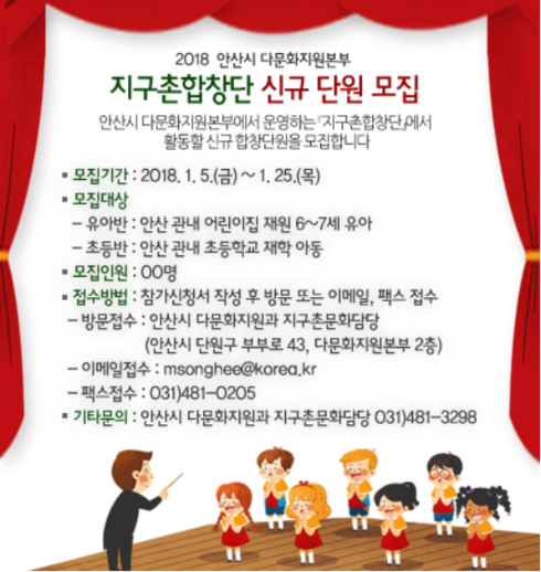 | 2018 안산시 다문화지원본부 지구촌합창단 신규 단원 모집 |