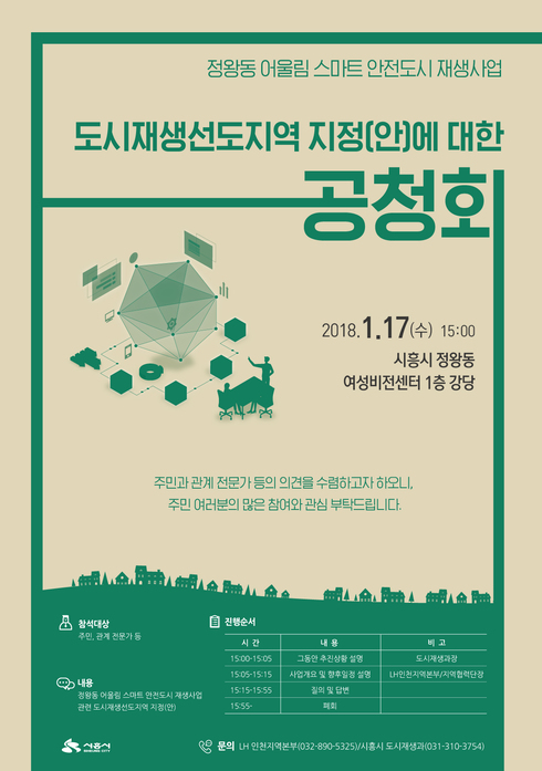 | 정왕동 어울림 스마트 안전도시 재생사업 도시재생선도지역 지정(안)에 대한 공청회 |