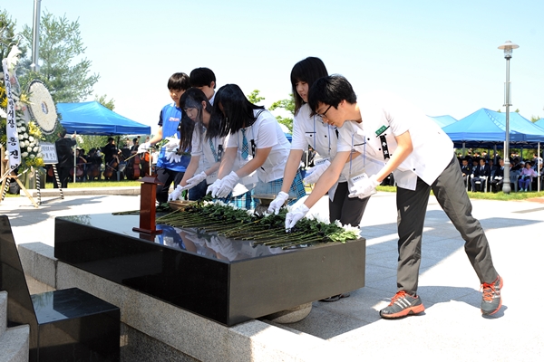 한편 현충일 추념식 행사와 함께 현충탑 수청근린공원에서는 미래의 꿈나무들인 초·중·고교생 100여명이 제16회 학생 백일장을 통해 글로써 평화로운 세상을 표현하며 조국을 위해 희생한 선열들을 마음 속 깊이 새기는 뜻깊은 행사가 진행됐다.