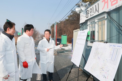 [시사인경제]정찬민 용인시장은 지난 14일 조류 인플루엔자(AI) 유입을 방지하기 위해 처인구 백암면 고안리에 설치된 거점소독시설을 방문해 방역현장을 점검하고 근무자들을 격려했다.