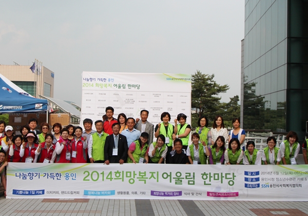 【경기인뉴스】용인시사회복지협의회(회장 김진희)가 개최한 ‘2014 희망복지 어울림 한마당’은 용인지역의 건전한 네트워크의 장이자 지역사회 내 나눔문화 확산을 위한 촉진의 장으로, 지역사회 내 다양한 자원 및 체계들과의 긴밀한 협조관계를 맺고자 기획되었다.
