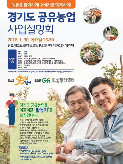 [시사인경제]경기도와 경기농식품유통진흥원은 ‘경기도 공유농업’을 추진하기 위해 오는 30일 경기도 공유농업 사업 설명회를 개최한다고 17일 밝혔다.