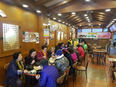 [시사인경제]동두천시 중앙동에 소재하고 있는 김밥천국에서는 지난 16일 관내 홀로계신 어르신 20명을 초청, 겨울철 어르신들의 건강을 위해 미역국과 정성껏 준비한 반찬을 대접하며 훈훈한 인정을 나눴다.