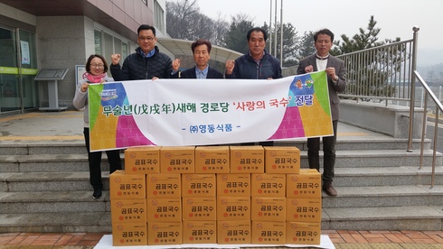 [시사인경제]2018년 무술년 새해를 맞아 ㈜영동식품에서 17일 군내면 어르신들을 위해 국수 30여 박스를 전달했다.