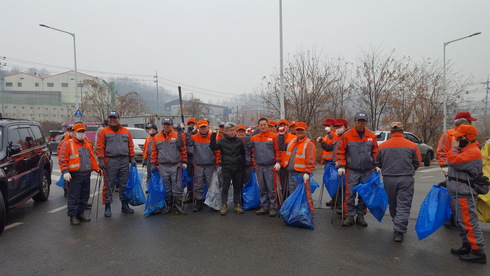[시사인경제]오산시 환경미화원들이 지난 17일 최근 쓰레기 무단투기 민원이 다수 발생하고 있는 가장산업단지 일원에서 합동 환경정화를 실시했다.