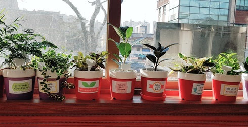 아이비 등 공기정화식물이 심어진 청렴화분에는 ‘청렴과 나는 친구사이, 부패와 나는 원수지간’ ‘청렴열차 구성동에서 시작합니다’ 등 직원 스스로 고안한 청렴표어가 부착됐다.