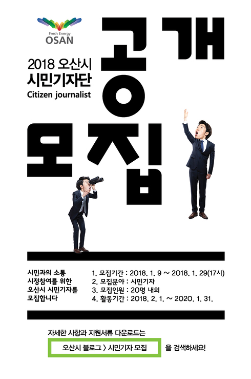 [시사인경제]오산시는 오는 29일까지 시정 참여와 시민 소통으로 시민 공감행정을 위한 시민기자단을 모집한다고 밝혔다.