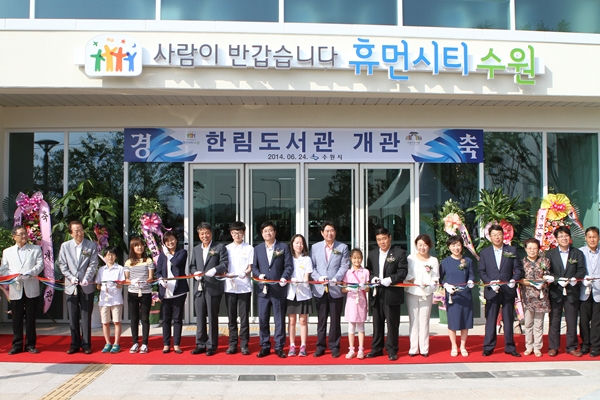 【경기인뉴스】수원시는 24일 오후 4시 권선구 권선동 소재 한림도서관에서 염태영 수원시장, 민한기 수원시의회 부의장을 비롯해 도․시의원, 유관단체원과 시민 등 500여명이 참석한 가운데 개관식을 개최했다.