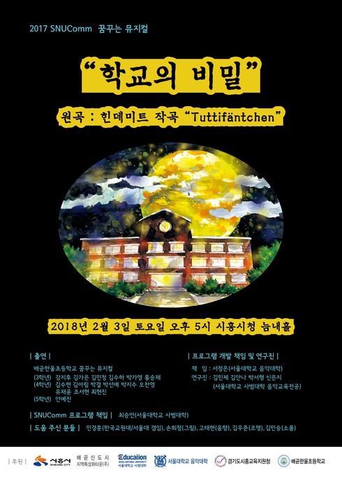 [시사인경제]시흥시는 서울대 사범대학과 함께 오는 2월 3일 오후 5시, 시흥시청 늠내홀에서 꿈꾸는 뮤지컬 ‘학교의 비밀’을 공연한다.