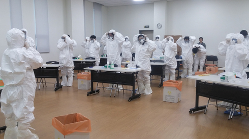 특히 교육훈련 중 개인보호구(level D)를 참여자들이 직접 착용해보고 방법을 익혀 실제 감염병 위기상황이 발생했을 때 효율적으로 현장대응을 할 수 있도록 훈련했다.