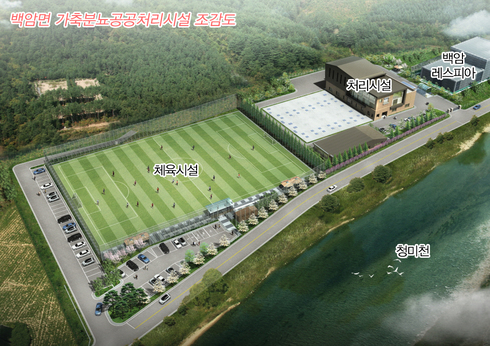 또 이곳에서는 하루 30톤의 액상비료를 생산해 농가에 공급하고, 분뇨 처리수 방류시 법적수질기준인 BOD 30mg/L 보다 강화된 BOD 20mg/L 이하로 처리된다. 부대시설로 주민들이 이용할 수 있는 축구장도 들어선다.