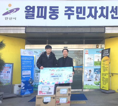 [시사인경제]안산시 월피동에 소재한 연세한미태권도는 지난 1월 30일 어려운 이웃에 전해달라며 관원들이 십시일반 모은 라면을 월피동에 전달했다.