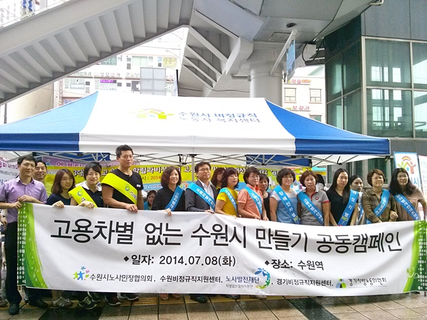 이번 캠페인은 수원시비정규직노동자복지센터, 수원여성회, 노사발전재단등 관련단체들이 참여했다.
