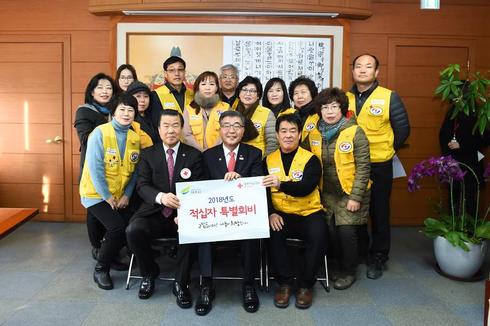 [시사인경제]여주시는 지난 1월 31일 여주시청에서 김훈동 대한적십자사 경기도지사 회장을 비롯한 읍·면·동 단위봉사회 회장 등이 참석한 가운데 2018년도 적십자 특별회비를 전달했다.