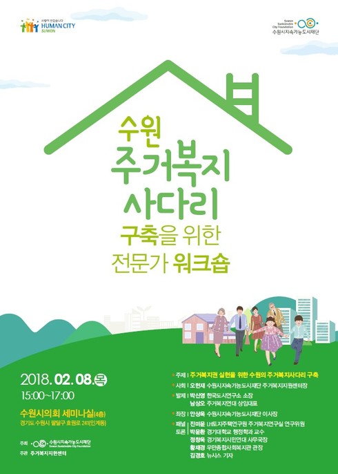 [시사인경제]수원시지속가능도시재단은 오는 8일 오후 3시 수원시의회 세미나실에서 ‘수원 주거복지사다리 구축을 위한 전문가 워크숍’을 개최한다.