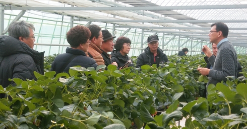 | 지난해 딸기 농가에서 진행된 ‘딸기 재배 기술교육’ |