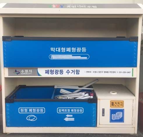 | 동 주민센터에 설치된 폐형광등·폐건전지 수거함 |