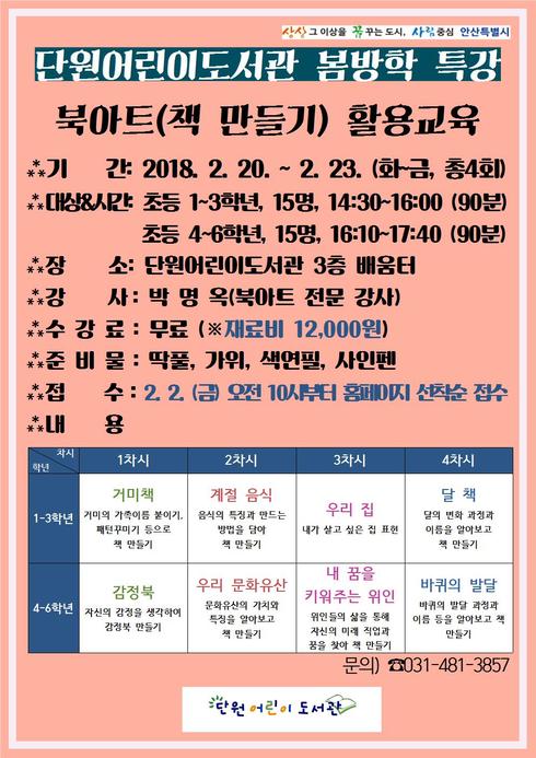 단원어린이도서관은 오는 20일부터 진행하는 봄방학 특강 ‘북아트 활용교육’을 마련했다.