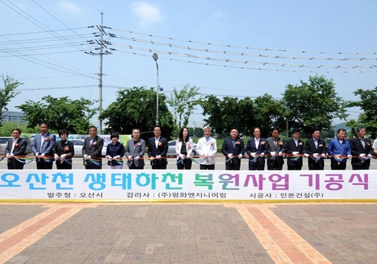 【경기인뉴스】채의선 기자 = 오산시(시장 곽상욱)는 지난 7일 오전 맑음터공원에서 생태하천복원사업 기공식을 가졌다. 이날 기공식에는 곽상욱 오산시장과 최웅수 오산시의회 의장, 시의원 등 내빈을 비롯한 시민·사회단체 회원 300여명이 참석한 가운데 오산천이 시민에게 더욱 친숙한 하천으로 거듭나기를 한마음으로 기원하며 기공식을 축하했다.