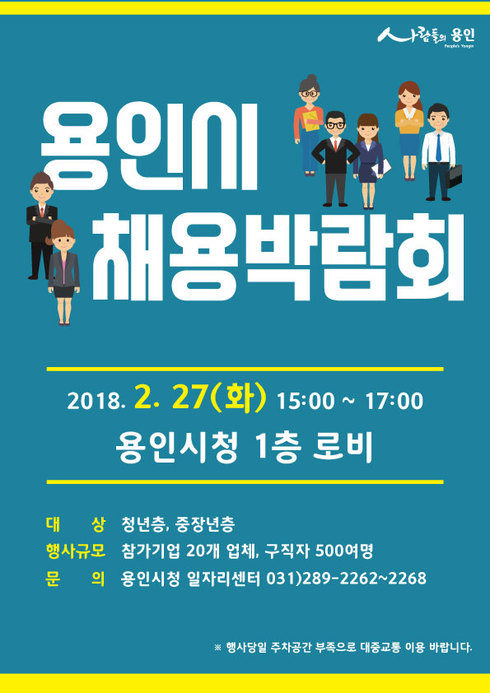 [시사인경제]용인시는 구직자들에게 취업기회를 제공하는 올해 첫 채용박람회를 오는 27일 오후 3시부터 시청로비에서 개최한다고 밝혔다.