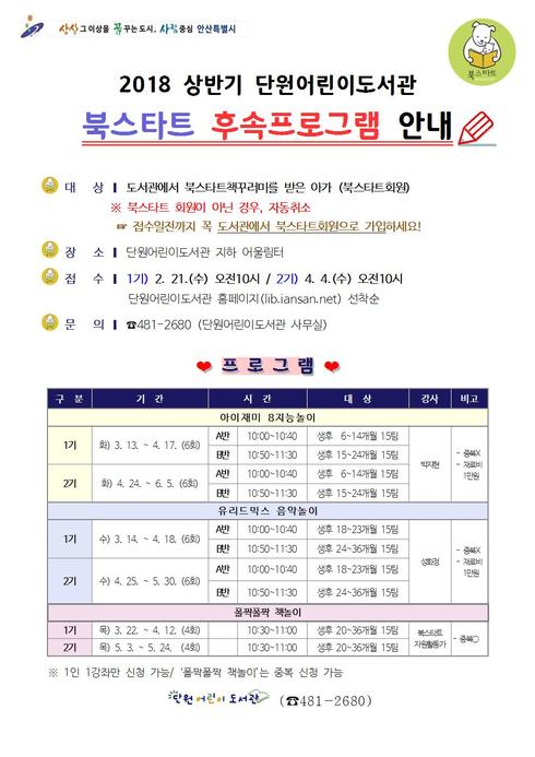 | 2018 상반기 단원어린이도서관 북스타트(플러스) 후속프로그램 안내 |