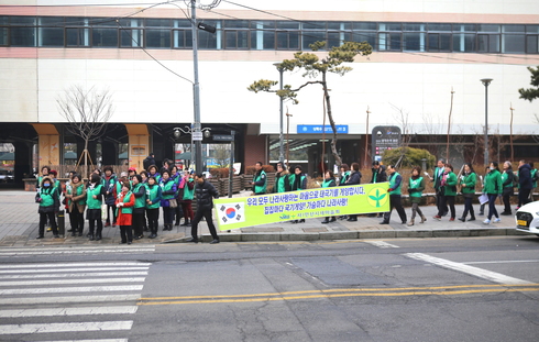 행사에 참여한 회원들은 2월 막바지 추위에도 불구하고 오가는 시민들에게 온 국민이 3.1절의 의미를 되새기며, 3.1운동의 정신을 계승하자면서 재미있는 퍼포먼스를 곁들이며 태극기 달기를 적극 홍보했다.