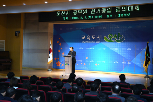 [시사인경제]오산시는 8일 시청 대회의실에서 오는 6월 13일 실시하는 제7회 전국동시지방선거를 대비해 ‘공무원 선거중립 실천 결의대회’를 개최했다고 밝혔다.