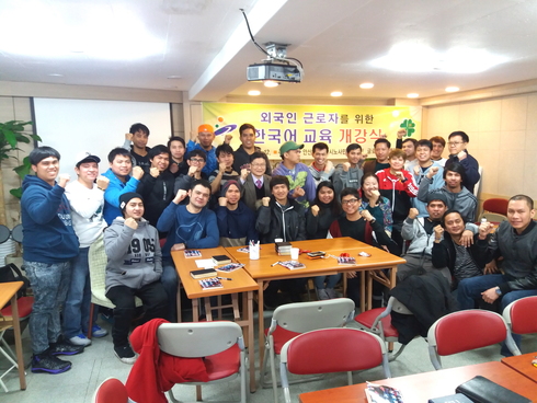 [시사인경제]안산시노사민정협의회는 지난 11일 안산글로벌미션센터에서 ‘외국인 근로자를 위한 한국어교육‘ 개강식을 가졌다.