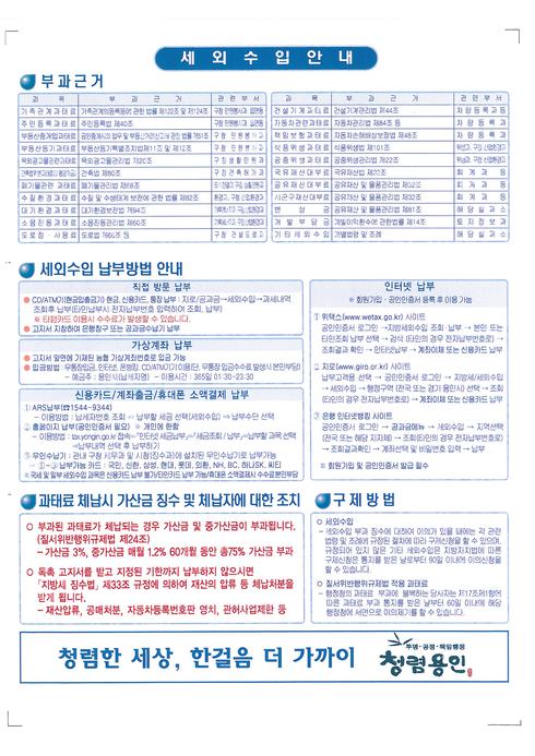 이 청렴 세외수입 고지서 하단에는 ‘청렴한 세상, 한걸음 더 가까이 청렴용인’라는 문구가 찍혀 있다.