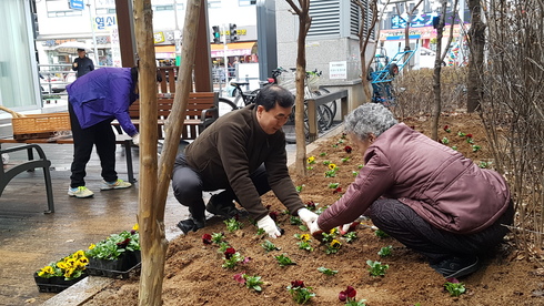이날 참가자들은 청사 앞뒤 화단에 팬지, 리빙데이지 등 봄꽃 4천본을 직접 심고 비료주기 등을 실시했다.