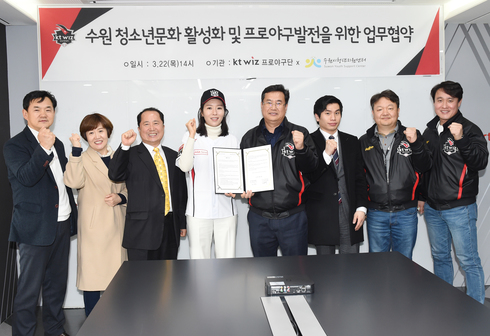 이날 협약식에는 최윤정 수원시청년지원센터장, 김현광 수원시 청년정책관, 임종택 케이티 위즈 단장 등이 참석했다.