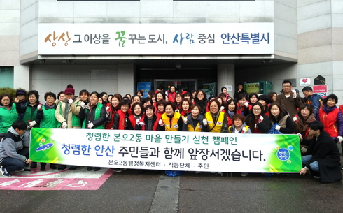 [시사인경제]안산시 본오2동 행정복지센터는 새롭게 시작하는 3월을 맞아 유관단체 및 주민들과 함께 청렴한 본오2동 마을 만들기 실천 캠페인을 실시했다.