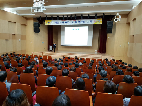 [시사인경제]안산시는 지난 22일 시 공직자를 대상으로 시청 대회의실에서 공직자 500여 명이 참석한 가운데 ‘시 핵심가치 비전과 직원 역량 강화’를 위한 교육을 실시했다.